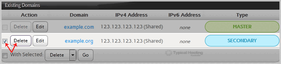 4. Under Existing Domains tab, Select Appropriate domain name you want to delete.