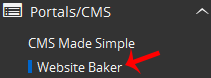 4. On the left side of your screen, you should locate the Portal/CMS category. Click on it and then click on the Website Baker link that will appear.