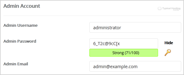 • Admin Username: Your new ProcessWire username (for security reason do not use the Administrator or the Admin username.)